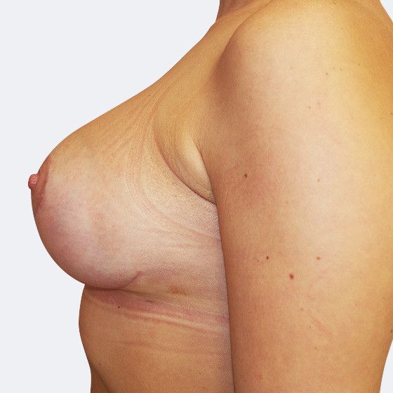 Breast augmentation with implants including modelling