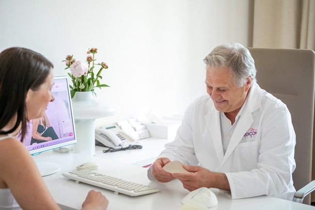 Das erste Treffen mit Frau Lucia fand in einer angenehmen Atmosphäre statt. Sie hatte von Anfang an eine klare Vorstellung von dem idealen Ergebnis. Nach drei Geburten störte sie sich an kleinen, leeren und leicht hängenden Brüsten. Wir einigten uns auf eine Vergrößerung mit runden Implantaten mit einer lebenslangen Garantie von 335 ml mit teilweiser Platzierung unter dem Brustmuskel. Sie wurde direkt in der Medicom-Klinik einer vollständigen präoperativen Untersuchung unterzogen, was sie sehr zu schätzen wusste. Der Eingriff verlief standardmäßig und auch der postoperative Verlauf war ohne Komplikationen. Die Kundin ist sowohl mit der Form als auch mit der Größe ihrer Brüste zufrieden.