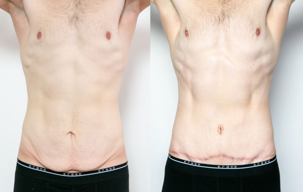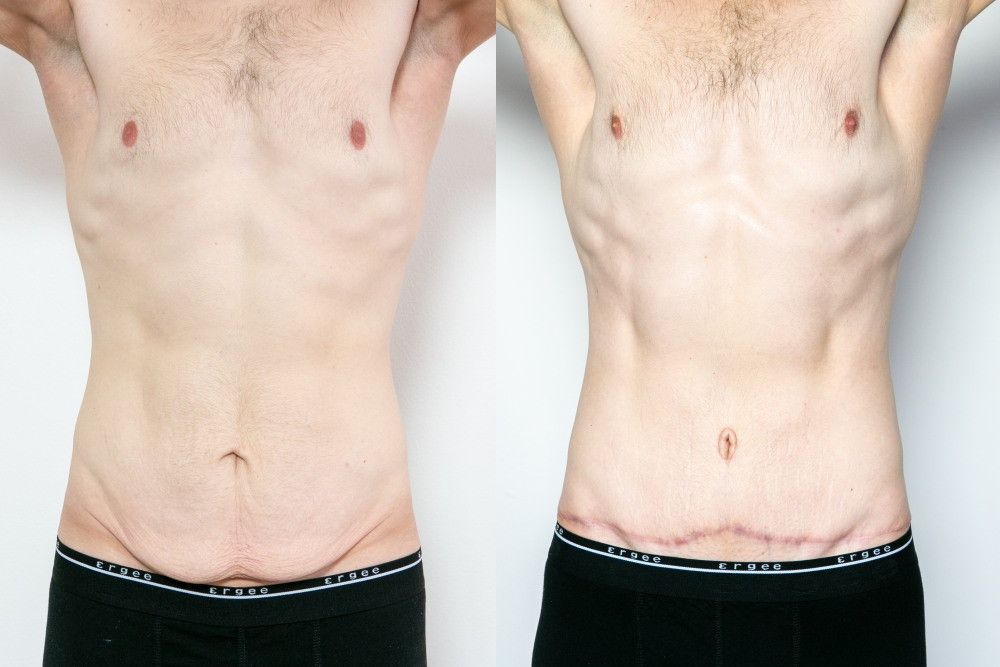 Er kam bereits mit einer athletischen Figur in die Sprechstunde, hatte aber aufgrund des Umfangs der Fettreduktion einen Hautüberhang am Unterbauch, den er in seiner Unterwäsche verbarg. Verständlicherweise beeinträchtigte dies sein Privat-, Intim- und Sportleben. Daher empfahl ich ihm nach einem persönlichen Beratungsgespräch eine Bauchdeckenstraffung, bei der wir diesen Haut- und Unterhautlappen entfernten und seinen Bauch zusätzlich strafften. Das Ergebnis ist ein flacher, straffer und Martins fleißiger und sportlicher Unterleib. Die einzigen Erinnerungen an den Eingriff sind die Narbe um den Bauchnabel und eine dünne Narbe im Unterbauch, die in seiner Unterwäsche versteckt ist. Wir sind beide mit dem Ergebnis zufrieden.